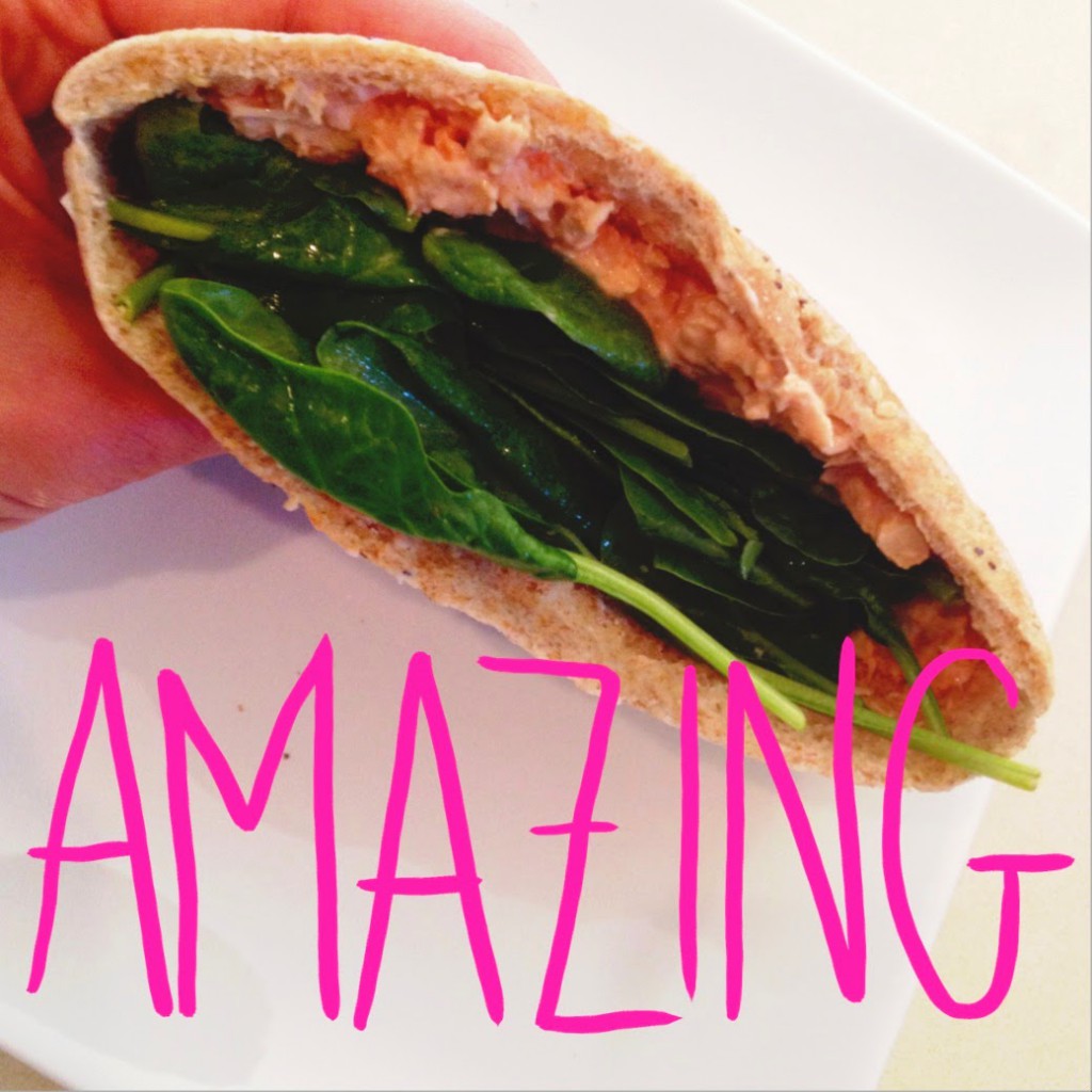 Sriracha Tuna Salad: this is just a can a tuna, zero calorie Greek yogurt, and sriracha. Mix it together to your liking & you’re done! I like a lot of yogurt. It is so good, and I use it in wraps or pitas with a little spinach and tomato.